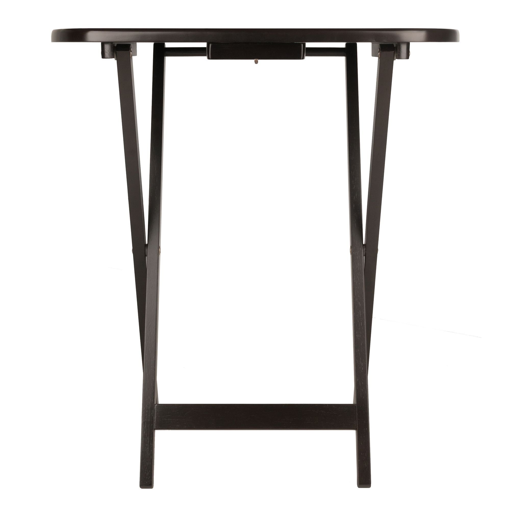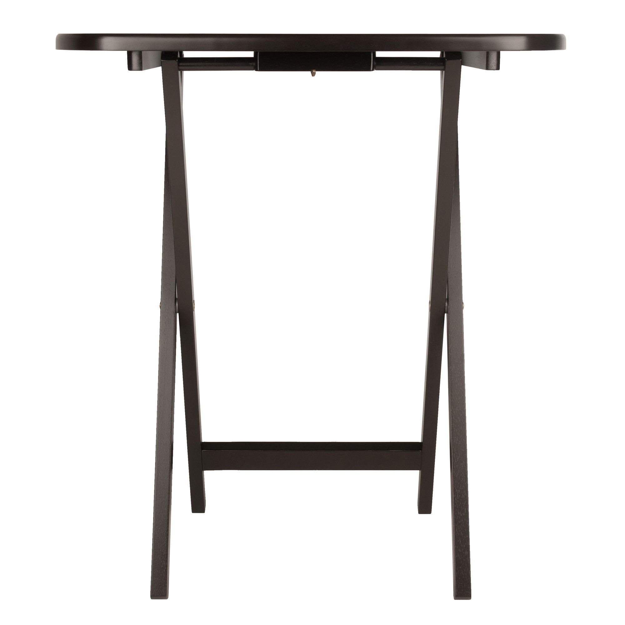 Make entertaining simple and easy with the Winsome Wood Cade Oversized Snack Tables. Simplicity; convenience; and quick set-up define these oblong tables. generously proportioned for a casual meal at home in the family room or on the patio; or for working on your laptop. This set of foldable tables open up to X-frame bases which make these table not only look good but also help with stability. Tables easily open up; with a wood stopper on the other end helping the legs stay standing. Great for daily use and compact enough to store in the closet. Perfect for small spaces; dorm room; kids' room; an infinity of rooms these can be used in. Split up the two single tables; give one to a friend; neighbor; or simply keep both for when guest come over. Constructed of solid and composite wood in a rich coffee finish allowing these to look neat and attractive. Conveniently packed and shipped in 1 box. Tables arrive ready to use and require no assembly.