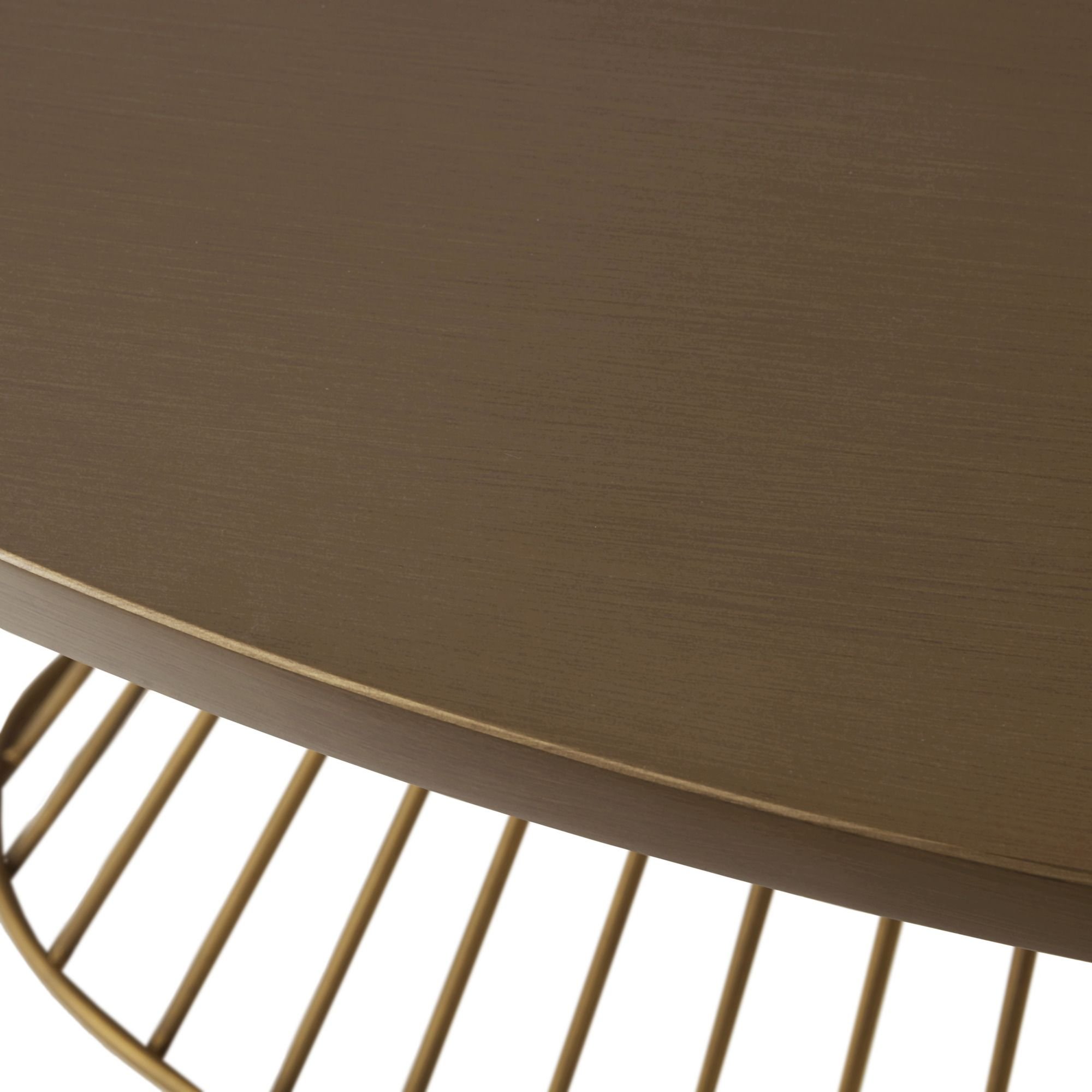 Add a touch of mid century modern to your living room with the Mercer coffee table. The table is inspired by the iconic 60's silhouette with a modern twist of golden bronze tops and antique bronze wired frames for an updated look. Table will be shipped in 2 cartons. Assembly required.